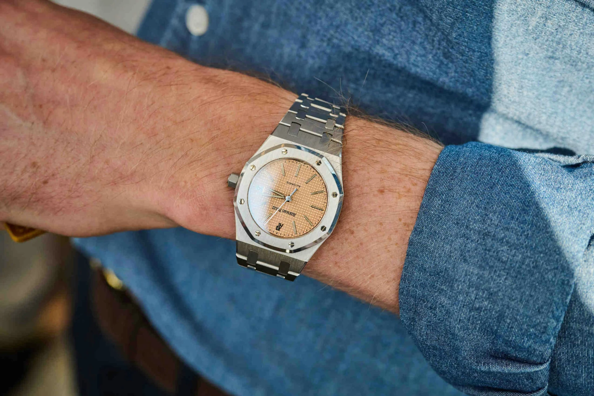 Erika, aka WatchMissGMT, with her Patek ref. 3800.Eneuri Acosta with his burl wood Rolex Day-Date.