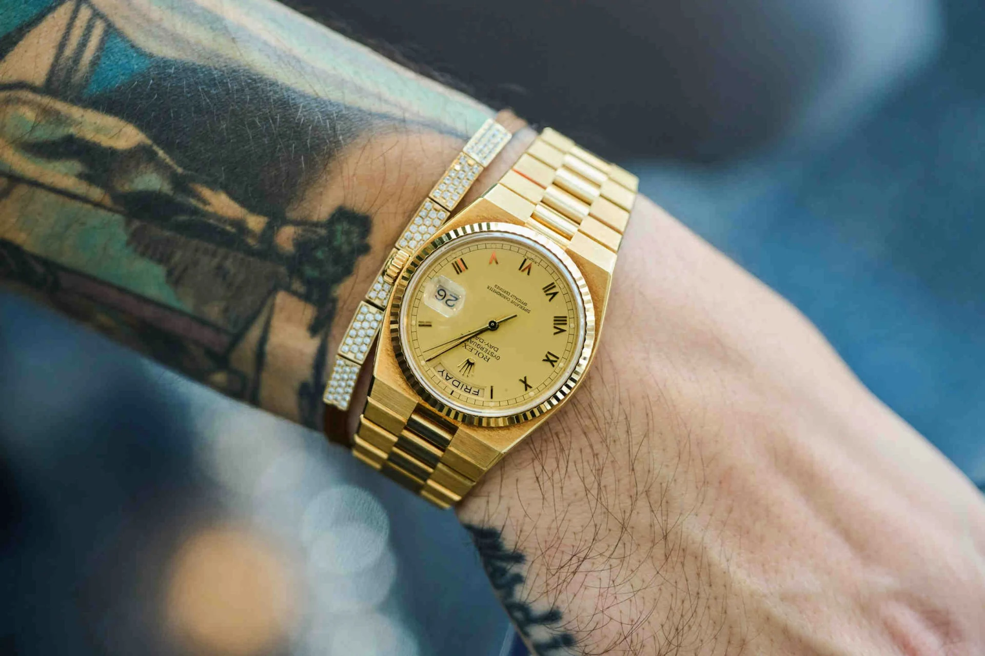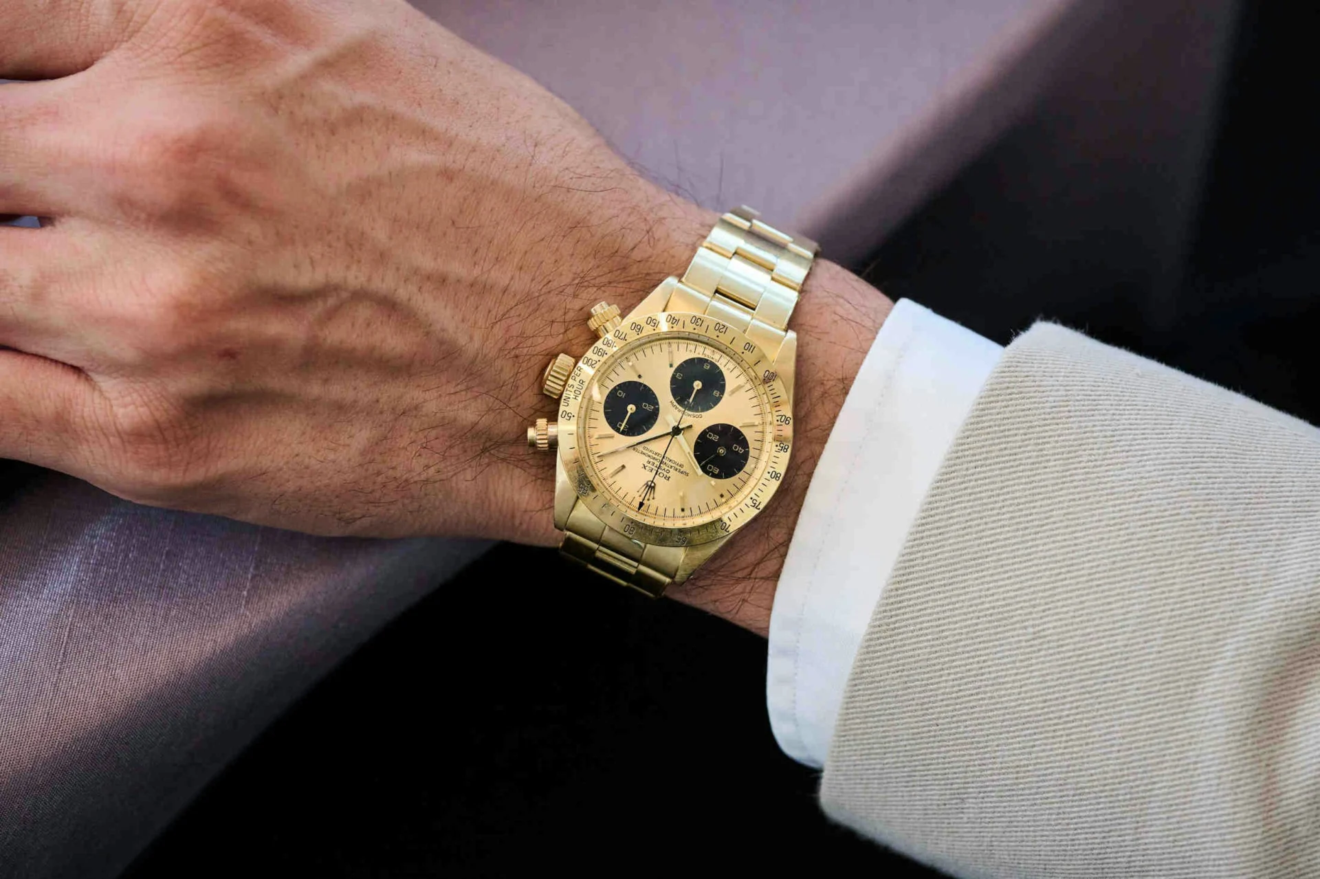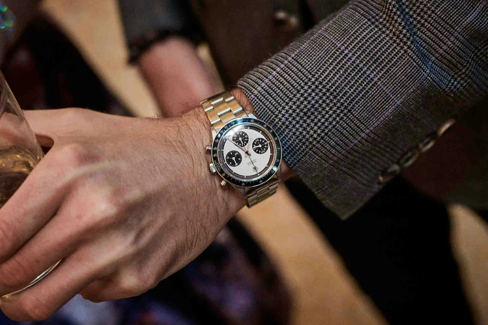 … and ending on a white gold Rolex Daytona ‘Le Mans.’ Until next time, cheers from Rolliefest 2025!To round out the night, we have the original legend, and the new, starting with a Paul Newman Daytona.Rich Lopez of Sotheby’s wearing Rolex Daytona ref. 6263 nicknamed “Desert Eagle.” The dial features “Quraysh Hawk” with the UAE coat of arms. In a standing position, the hawk’s feet rest on top of the ruler of Dubai’s signature, Mohammed bin Rashid Al Makhtoum.A sodalite and diamond dial white gold Rolex Daytona ref. 116519.Photographer extraordinare Chris Coe with a bit of yellow gold flex.A sodalite and diamond dial white gold Rolex Daytona ref. 116519.Photographer extraordinare Chris Coe with a bit of yellow gold flex.A crazy Rolex Disco Volante. I didn’t catch the reference number but I think it is a ref. 2947.Oh wait, there’s a new argument that just popped up. Amazing ref. 18308.The knowledge? It was about our shared opinion that white metal Day-Dates are the best.Fred Savage wearing a super honest Eterna Kontiki.Bernhard Bulang, winner of the Tudor Black Bay 54 engraved with the Rolliefest logo, wearing his new prize Gianni Agnelli-style.A really nice Rolex GMT-Master ref. 6542.A yellow gold Rolex Pre-Daytona ref. 6238.A very tropical Eberhard Contograf.Speaking of amazing views, Adam Victor goes three for three on great watches with his 1970 Breguet complete calendar chronograph with Valjoux 88 movement.A black galvanic gilt dial Rolex ref. 6238 “Pre-Daytona” on the wrist of James Lamdin.A late “Ed White” Omega Speedmaster with blue “soliel” dial, belonging to Roy Davidoff.And last but not least, Robin Mann with a Rolex Explorer ref. 6350 ‘Honeycomb’ dial.Or one from a familiar wrist.How about a Rolex Daytona in yellow gold?Jesse Mack wearing a Patek AquanautAudemars Piguet ref. 14802ST “Jubilee” Royal Oak.An incredible tropical Rolex Day-Date with Eastern Arabic numerals, date, and day discs.You can always recognize Mr. A by the bracelets (and the cool watches).Chris Coe with a Hermés table clock.And a bit more Oysterquartz.Quintessential Ken Jacobs of “Wanna Buy A Watch?” But his has this unusual and cool frosting/spider dial effect.Similar vibes on Raymond Milnarik’s Universal Genève Polerouter.A very fun Rolex ref. 6085 worn by Sotheby’s Jonathon Burford.And a Nautilus, of course.Yes, that’s right, a Patek Cubitus made an appearance.The ultra-rare Patek ref. 5271P with rubies.The new Titanium Rolex YachtmasterA Rolex Submariner “Small Crown”Man, I love the Jean-Claude Killy.Raymond Milnarik of Oliver and Clarke with a yellow gold Movado M90 with Breguet numeralsTyler Vanes of Craft + Tailored with a Wyler chronograph he’d been hunting for years.Two Universal Uni-compax chronographs, including the author’s (on the right).Two outstanding chronographs, including a personal favorite reference, the Longines Sommatore Centrale, with a central minute counter.The kicker was this two-tone dialed Vacheron Constantin ref. 4178 with the most amazing patina and oxidation on the case.A tropical Audemars Piguet ref. 5402 “C Series.”Two Roger Smith Series 1.A Tiffany-signed Patek ref. 5170PA Hodinkee-signed Tudor Black Bay 58Tariq Malik had the most incredible piece of history at the event, with the most full of full sets you could ever see. The centerpiece was a Rolex ref. 3548 with a lot of extras, including the custom bracelet.A Longines Wittnauer pilot’s watch.And one for the U.S. Air Force.UAE Air Force-issued with the UAE roundel.This was an amazing collection of military-issued Porsche Design Chronograph 1s.What do you do when you have three Milsubs and one nato? Create the Rolex Milsub Worldtime, tracking three time zones.A Heuer Bundeswehr 3H chronograph.Now for something completely different, a Hamilton Khaki Field with a Land Rover-branded dial.Patek Philippe ref. 565 with salmon dial and Breguet numerals.You know what, let’s get some more time-only Pateks in here.Here’s one of my favorite Calatravas, the ref. 3796SG. The display caseback on the SG was put in because Japanese customers (who loved the small size) wanted to be able to see the movements and the rest is history.The super rare Patek Philippe ref. 5101P 10 Day TourbillonMy buddy Greg Wirtz with my favorite Chronomètre à Résonance of all time, the newest version with salmon dial in rose gold. Don’t believe me? Just ask him. With that, let’s look at some salmon dials.Another Universal, this one with a cloissoné dial for Saudi Arabia.He was wearing this square Universal.At every place setting was a keychain and key. In the corner was a box with a Tudor Black Bay 54 locked inside. The caseback was engraved. I didn’t try my key (it was for a Toyota).A very very tropical Rolex ref. 1016 Explorer.Or really any Daytona.Hard to go wrong with a yellow gold four-digit Daytona.Brynn Wallner with “daddy’s Datejust.”Jason Gong wearing De Bethune.A little Kari Voutilainen action goes really well to complement the rest of the room.The black mother of pearl dial really only comes out under direct light.A little Resonance double wrist from Kirill (aka @LunarOyster) with a Chronomètre à Résonance Boutique edition (left) and one of ten Chronomètre à Resonance with black mother of pearl dial.Andrew Shear with his absolutely incredible, very early Patek Philippe ref. 96 in stainless steel, with long signature, and black bullet indices and hands. If there were a few watches I wish I could have walked away with from the event, this would have been high on the list.Erika, aka WatchMissGMT, again with her Patek ref. 3800.A really cool pair of Rolex Submariners, a 5517 and a 5513 “Explorer Dial.”Adam Victor with an incredible L. Leroy & Cie. chronograph.There were less Paul Newmans this year but still quite a few.A Heuer Autavia with the “wings and wheels” Indianapolis Motor Speedway dial.Speaking of caseback engravings, here’s the Khanjar on Roy
